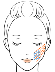 - 治療直後からお顔全体のお化粧はできますが、挿入部位は2週間程マッサージや圧迫をしないようにしてください。